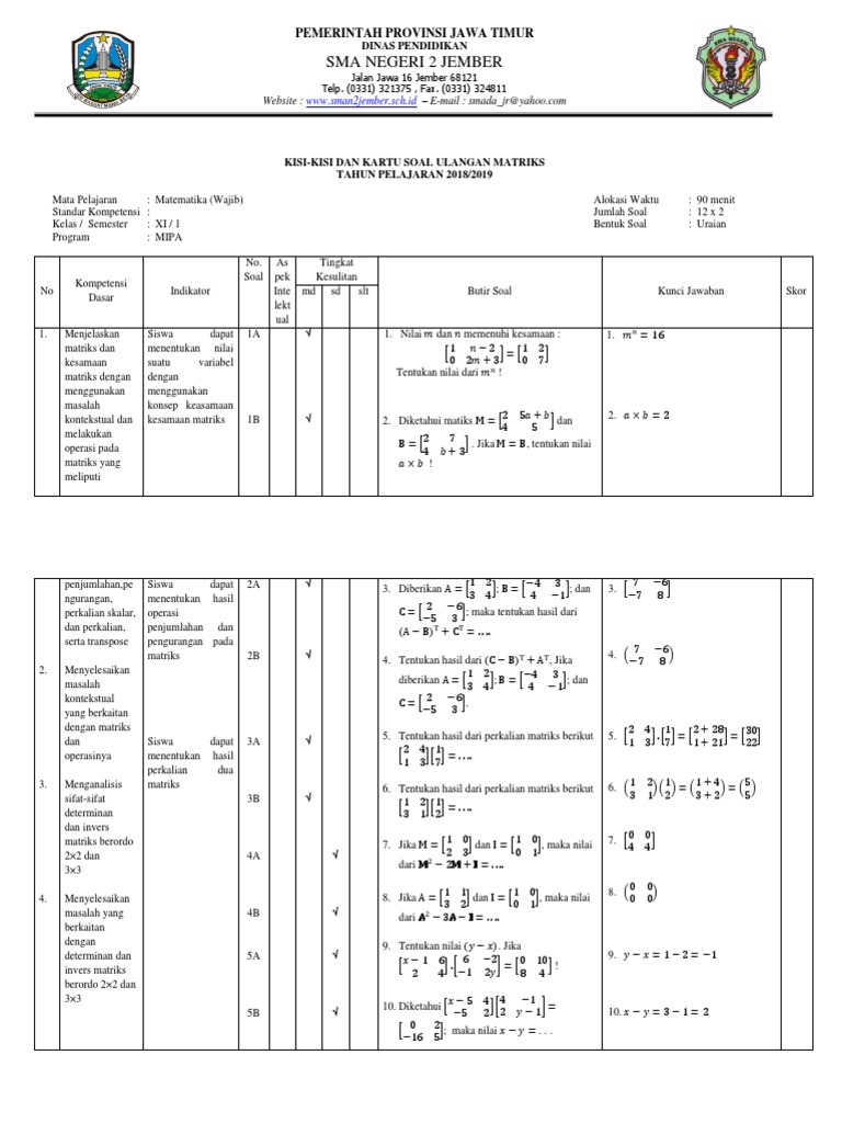 Kisi Kisi Dan Kartu Soal Matriks Ganjil 2018 2019