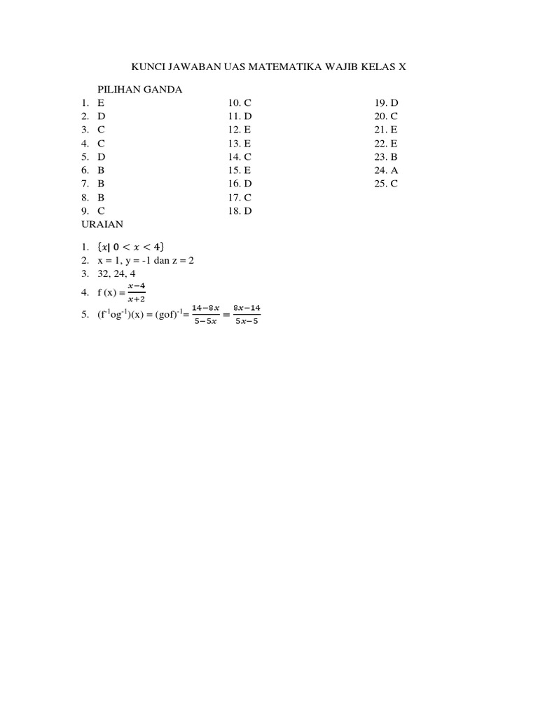 Kunci Jawaban Uas Ganjil Matematika Wajib Kelas X
