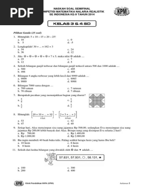 Kumpulan Soal Kompetensi Matematika Sd Matematika Nalaria Realistik