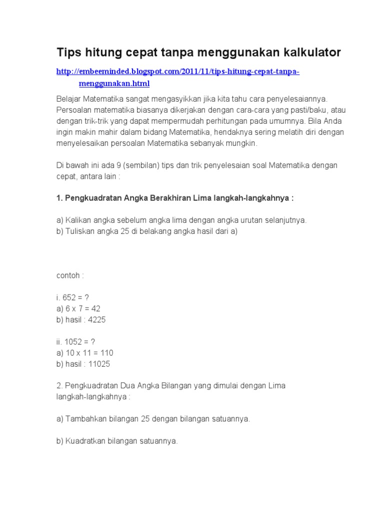 Cara Menghitung Matematika Dengan Cepat