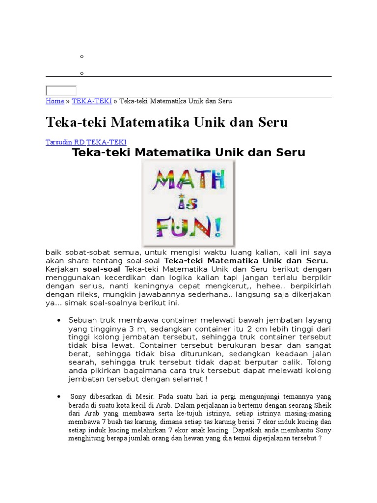 Soal Matematika Unik Menarik Dan Menantang Karyaku 2019