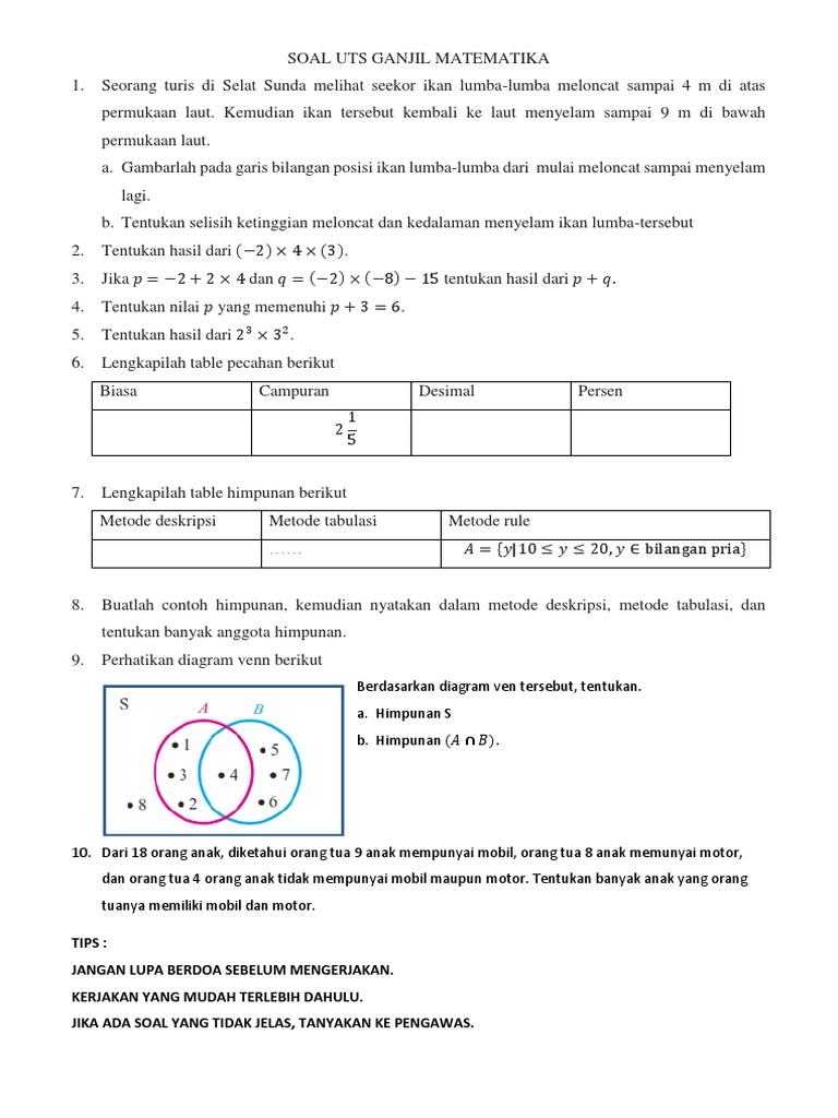 Soal Matematika Mts Kelas 7 Semester 1