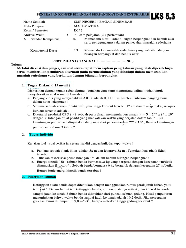 Lks 5 3 1 Pengguaan Bilangan Berpangkat