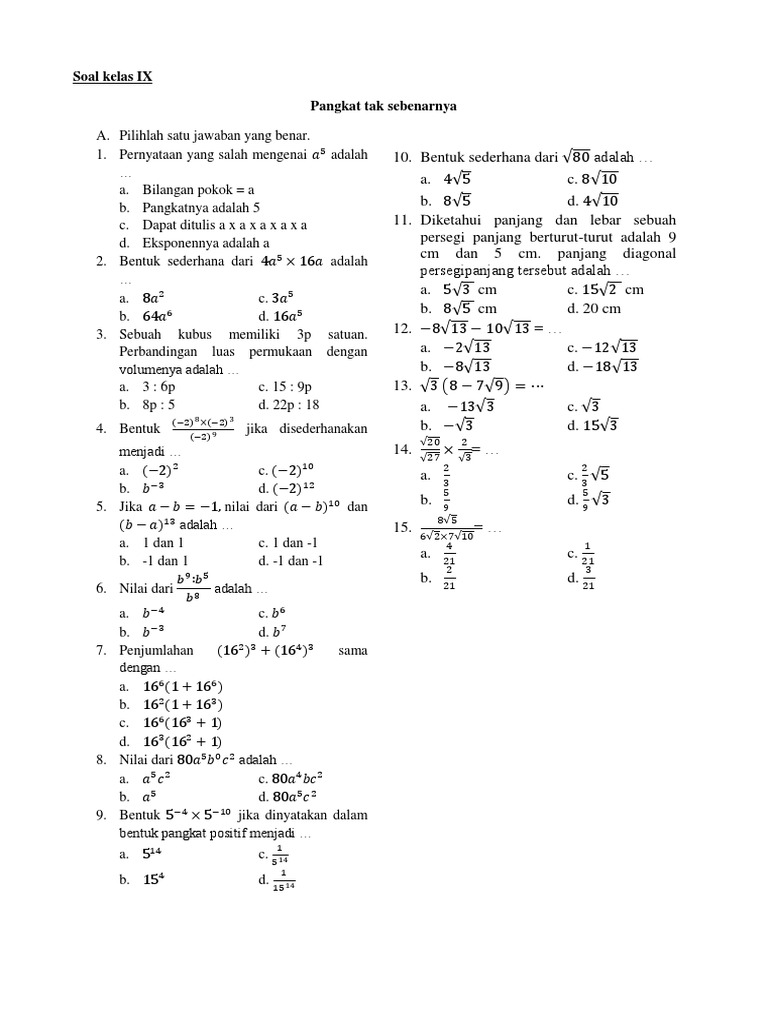 Contoh Soal Bilangan Berpangkat Dan Bentuk Akar Kelas 9 Ruang