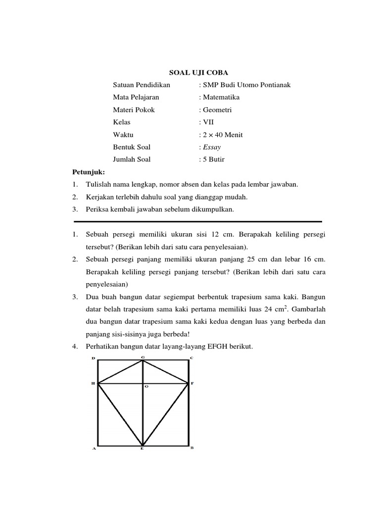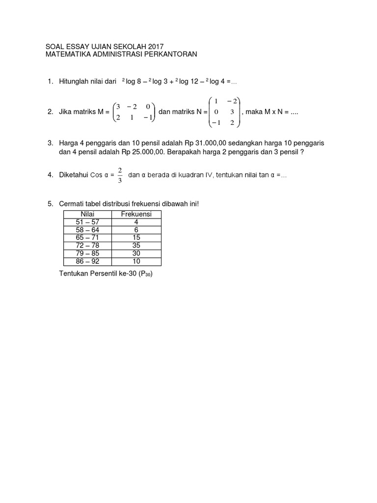Hot Contoh Kisi Kisi Soal Essay Matematika