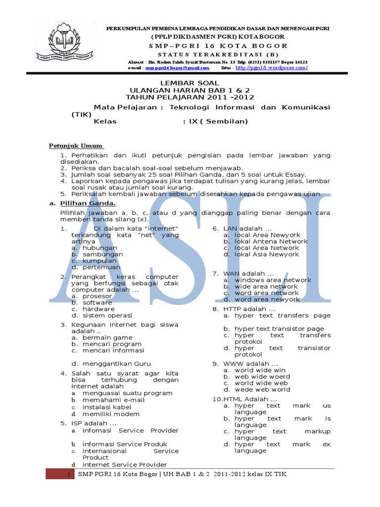 Soal Ulangan Harian 1 Tik Kls 8 Smt