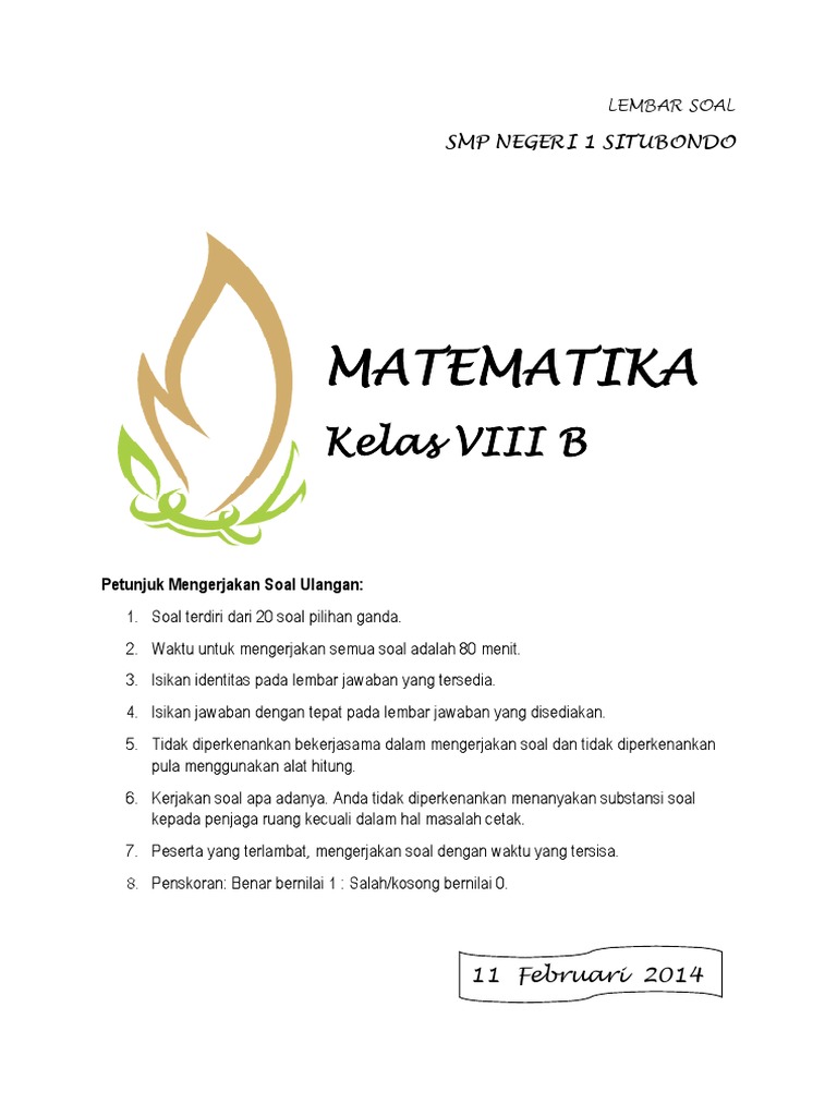 Soal Ulangan Harian Kelas Vii Smp Psm Kota Madiun