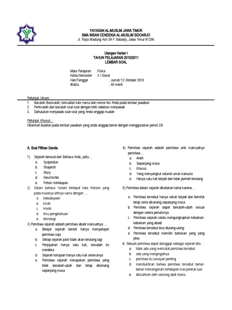 Doc Format Soal Ulangan Harian Supriyanto Praptoutomo Academia Edu