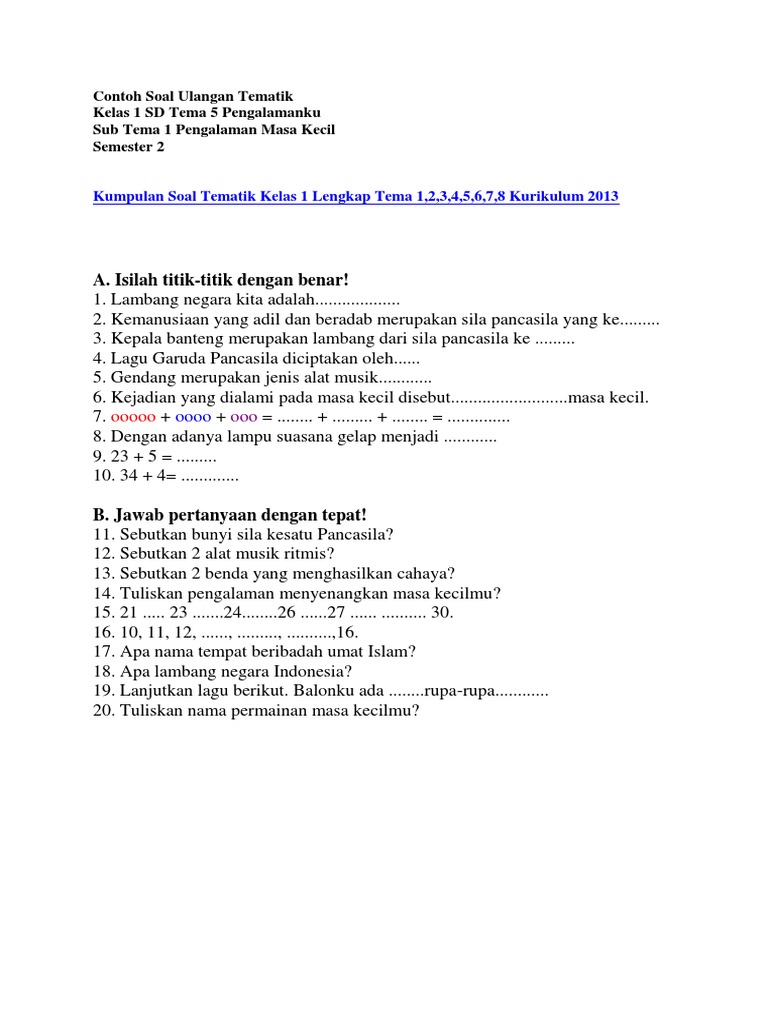 Contoh Contoh Soal Ulangan Semester 1 Untuk Anak Tk Google
