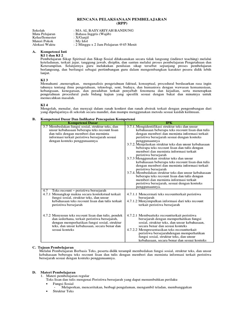 Rpp Bahasa Indonesia Kelas 7 K13 Revisi 2018 Semester 1 Dan 2