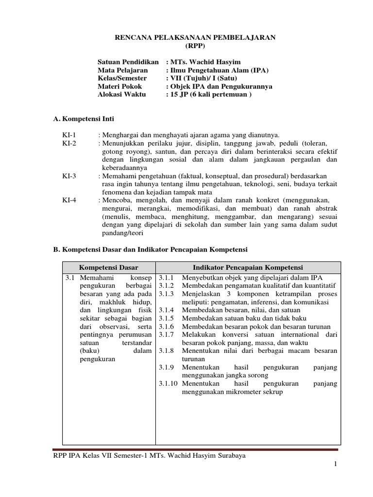 1 Rpp Kd 3 1 Objek Ipa Dan Pengukurannya