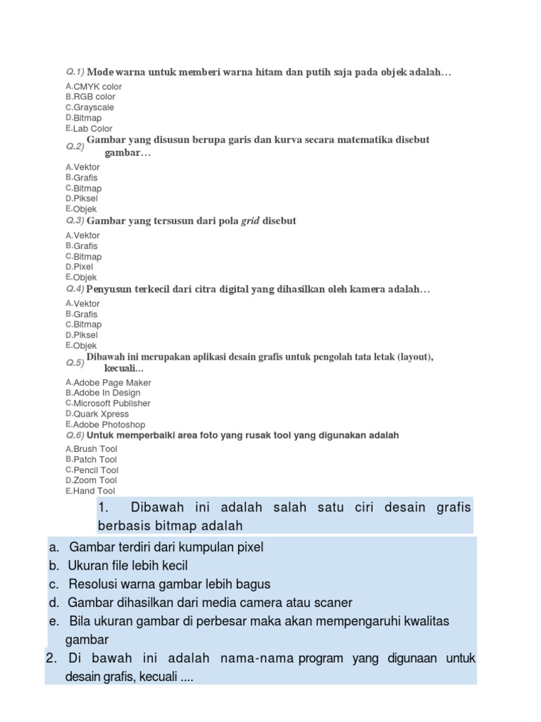 Soal Latihan Desain Grafis Beserta Jawabannya