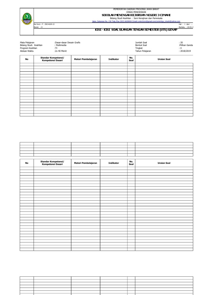 Aplikasi Kisi2 Kartu Soal Skor 30pg5urai Smk N 2 Salatiga