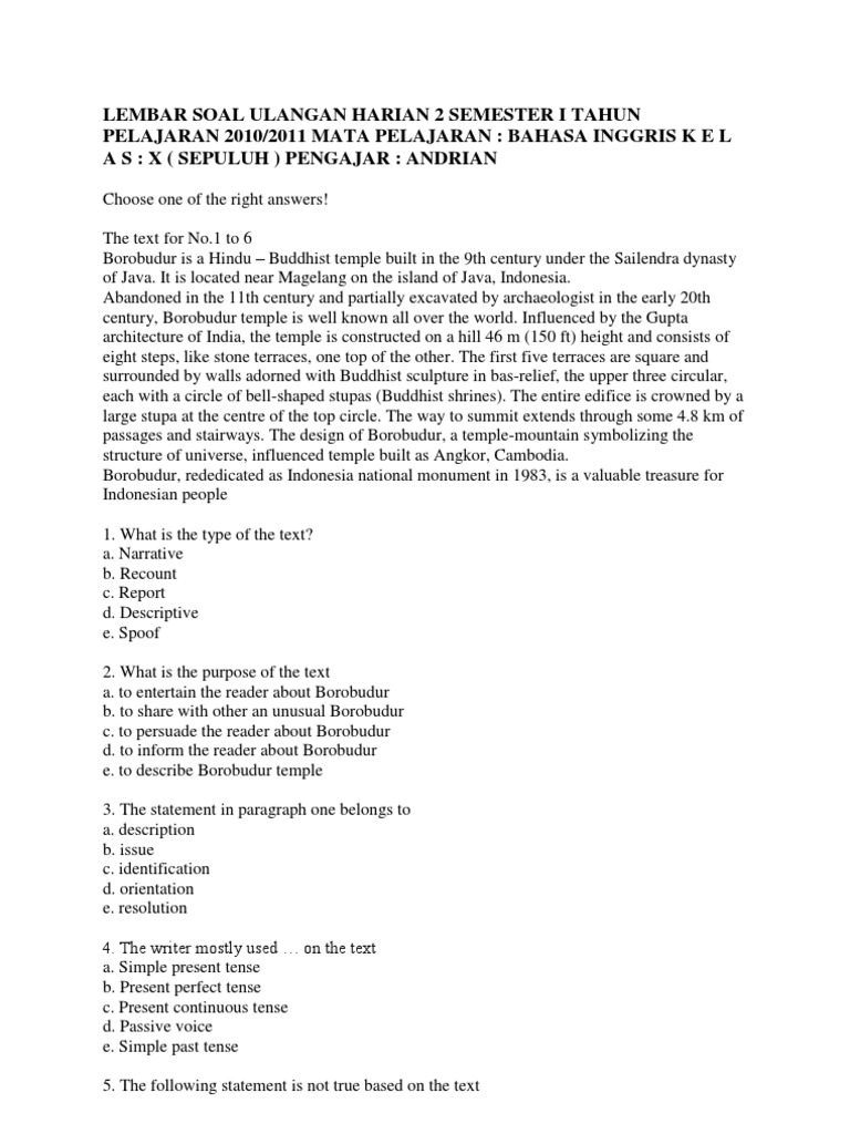 Soal Ulangan Harian Kelas 11 Narrative