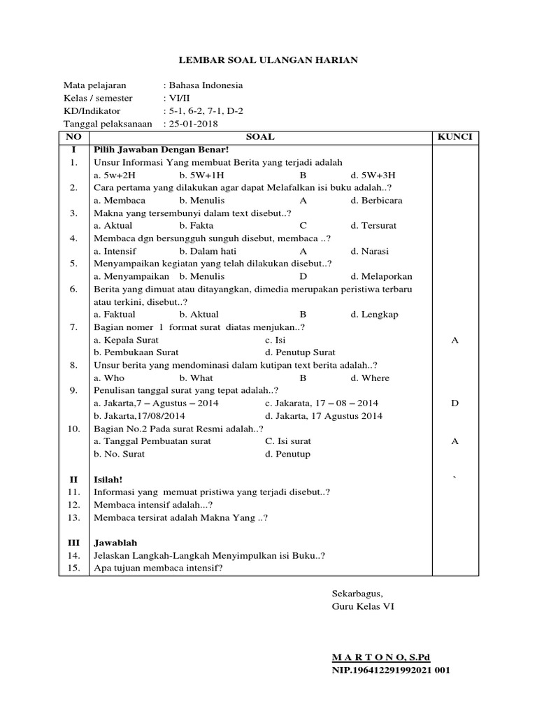 Doc Format Soal Ulangan Harian Supriyanto Praptoutomo Academia Edu