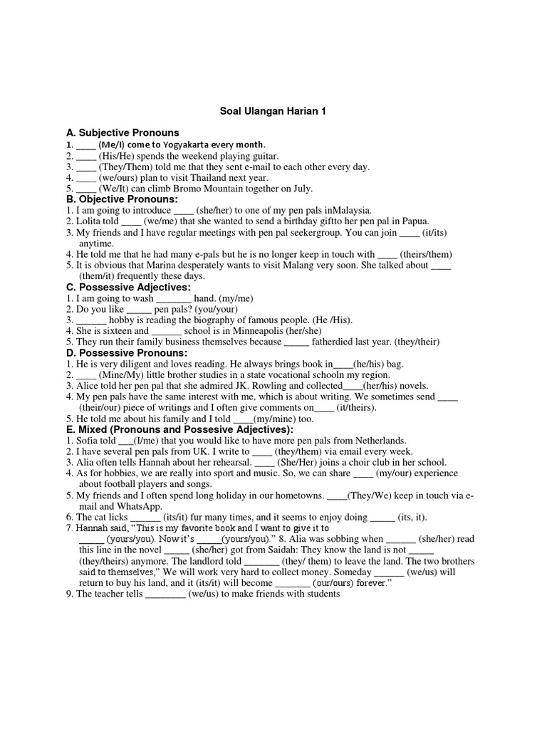 Contoh Soal Ulangan Harian Bahasa Inggris Kelas 7 Smp Part I