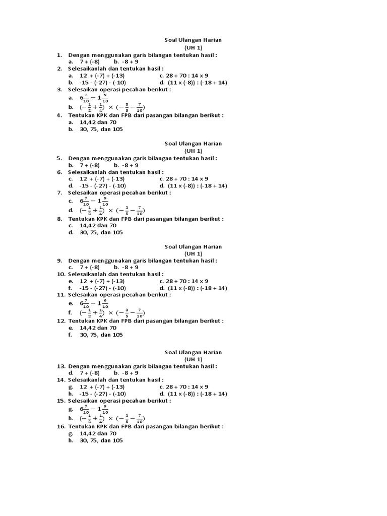 Soal Ulangan Harian Matematika Kelas 5 Sd Semester 1 Beatspolar