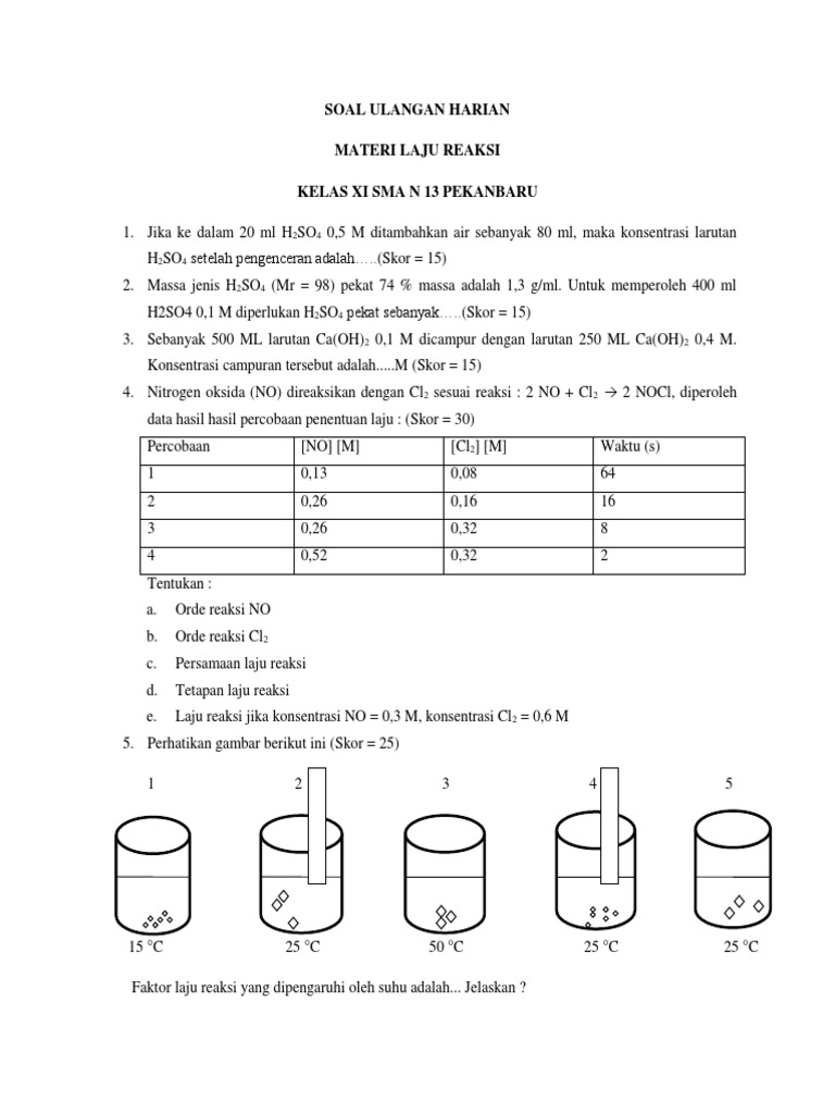 Soal Ulangan Harian Laju Reaksi Kimia