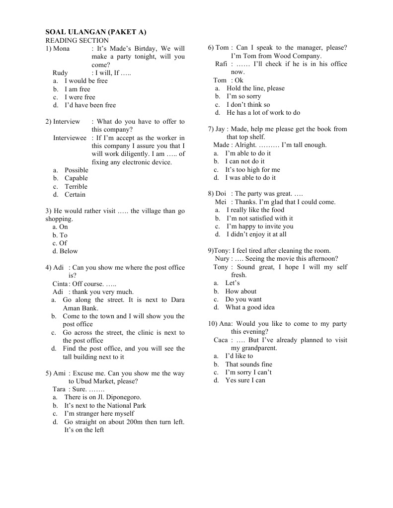 Contoh Soal Ulangan Akhir Semester Contoh Soal Dialog Menawarkan