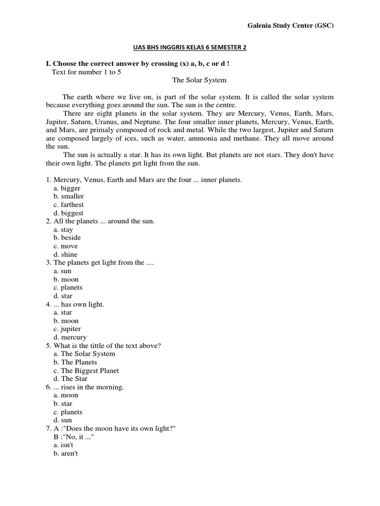 Soal Uas Bahasa Inggris Kelas 6 Sd Semester 1 Degree Stafflazy