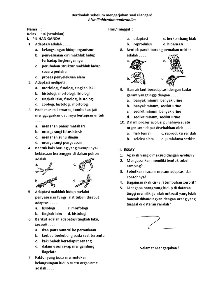 Contoh Soal Ulangan Harian Ipa Kelas 9 Semester 1 Ayomadrasah