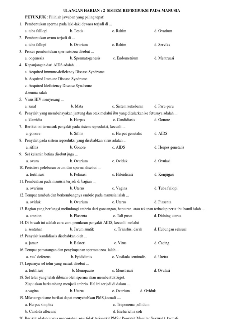 Soal Ulangan Sistem Reproduksi Manusia Ktsp K13 Pdf