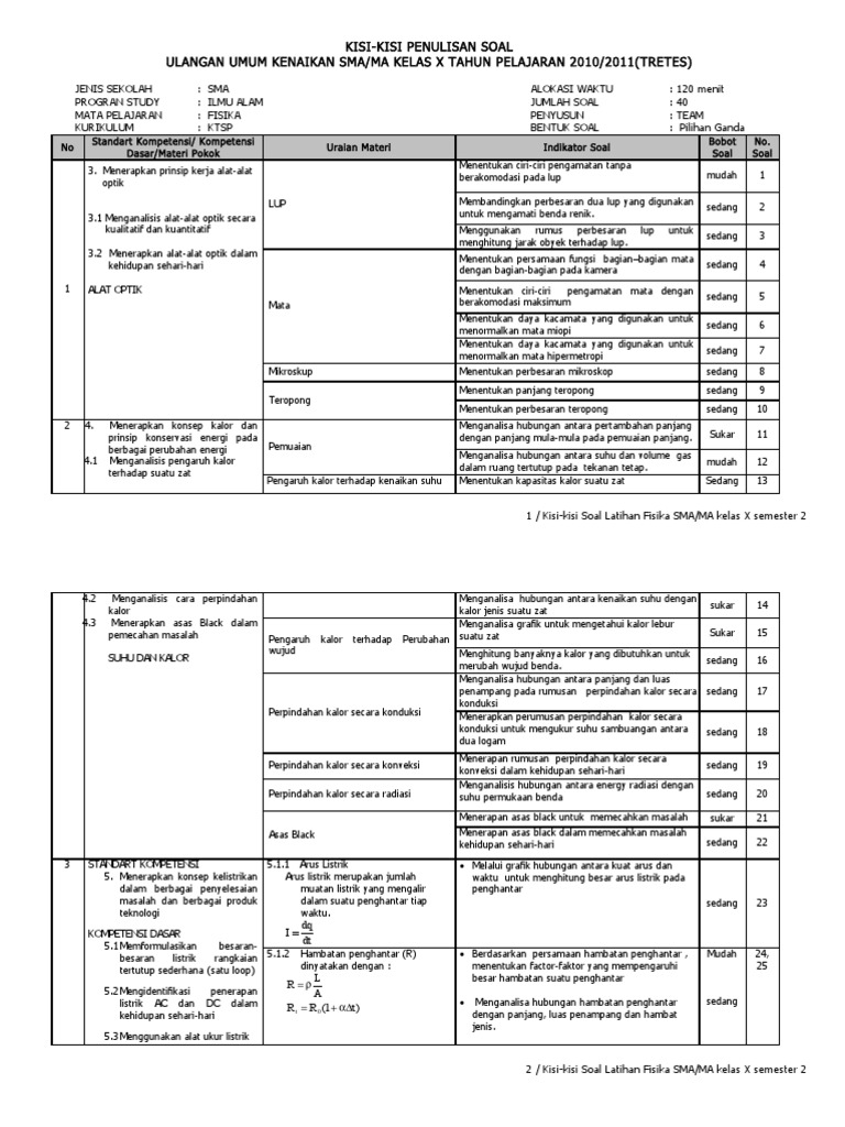 Contoh Soal Fisika Semester 2 Kelas 10 Kumpulan Artikel Bermanfaat