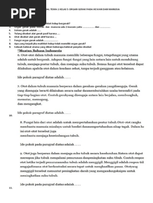 Kumpulan Soal Tematik Kelas 5 Tema 1 Organ Gerak Hewan Dan Manusia
